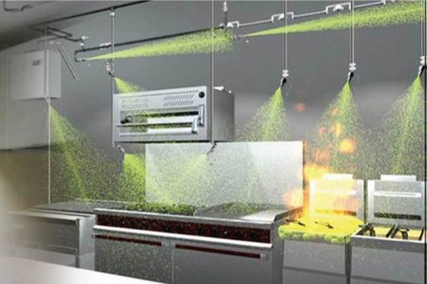 This triggers the system which releases the Wet Chemical extinguishing agent through a separate discharge line and expels it through specialized nozzles.