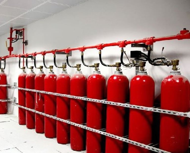 As soon as a fire is detected, the system is actuated and large quantities of extinguishing agent are released through wide-range nozzles that give the agent more reach.